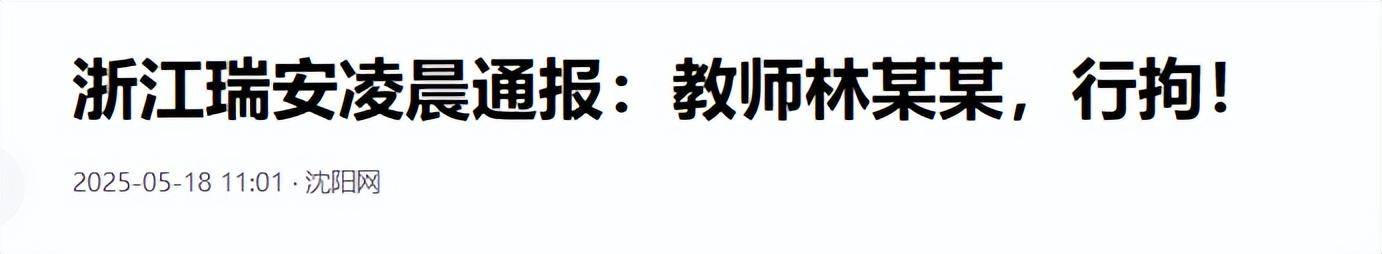 浙江瑞安凌晨通报:教师林某某,行拘! 2025-05-18 11:01·沈阳网