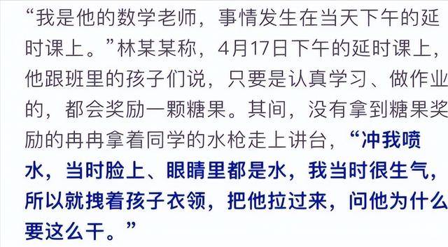 据了解,这件事情发生在4月17日的下午,当天,林老师在教室里给学生们上数学拓展课。