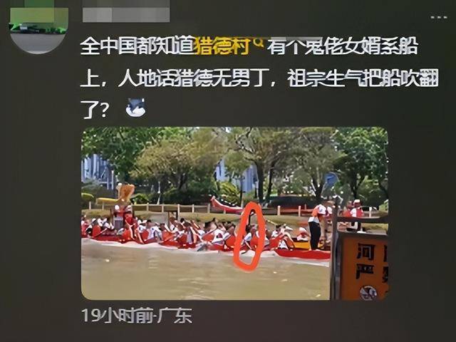 所以这就引起了很多人的不满,有人说,猎德没有壮年男丁了吗?让一个外族人来划龙舟。