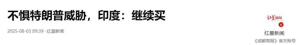 1、《不惧特朗普威胁,印度:继续买》2025-08-03 09:39 来源:红星新闻