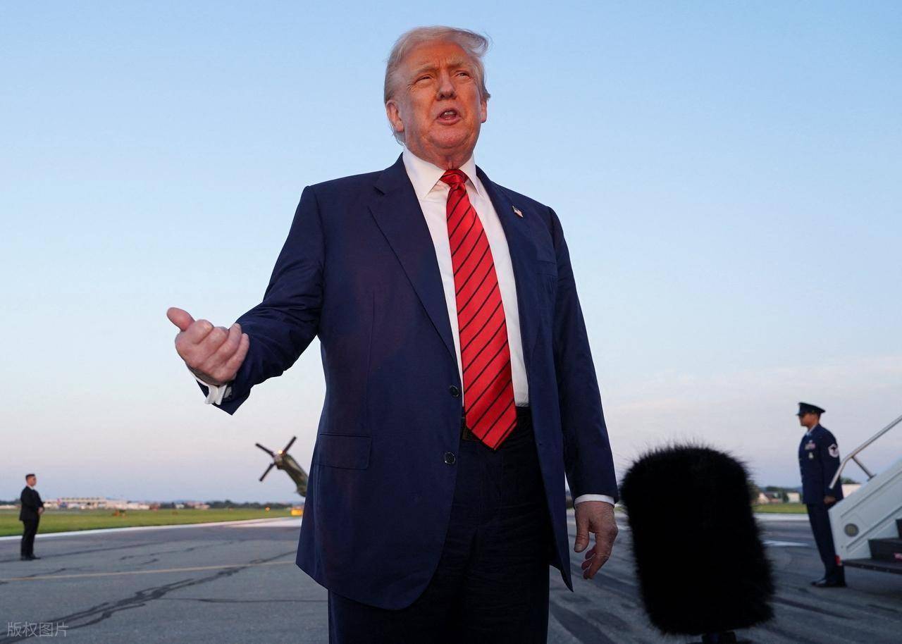 图 2025年8月3日,美国宾夕法尼亚州,美国总统特朗普在机场接受媒体采访。